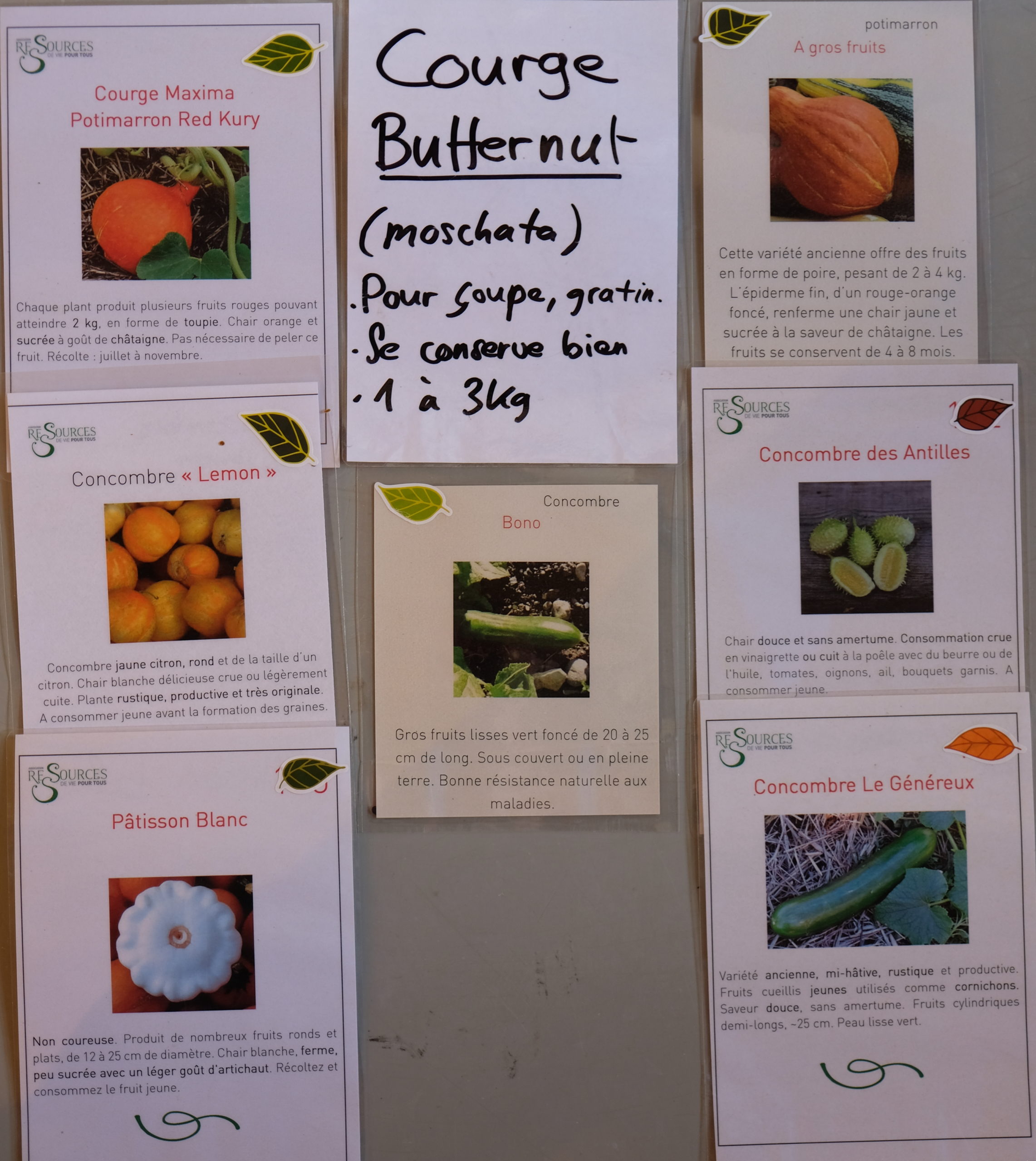 La liste des variétés de cucurbitacées (courges, concombres, pâtissons, potimarrons) est disponible ICI