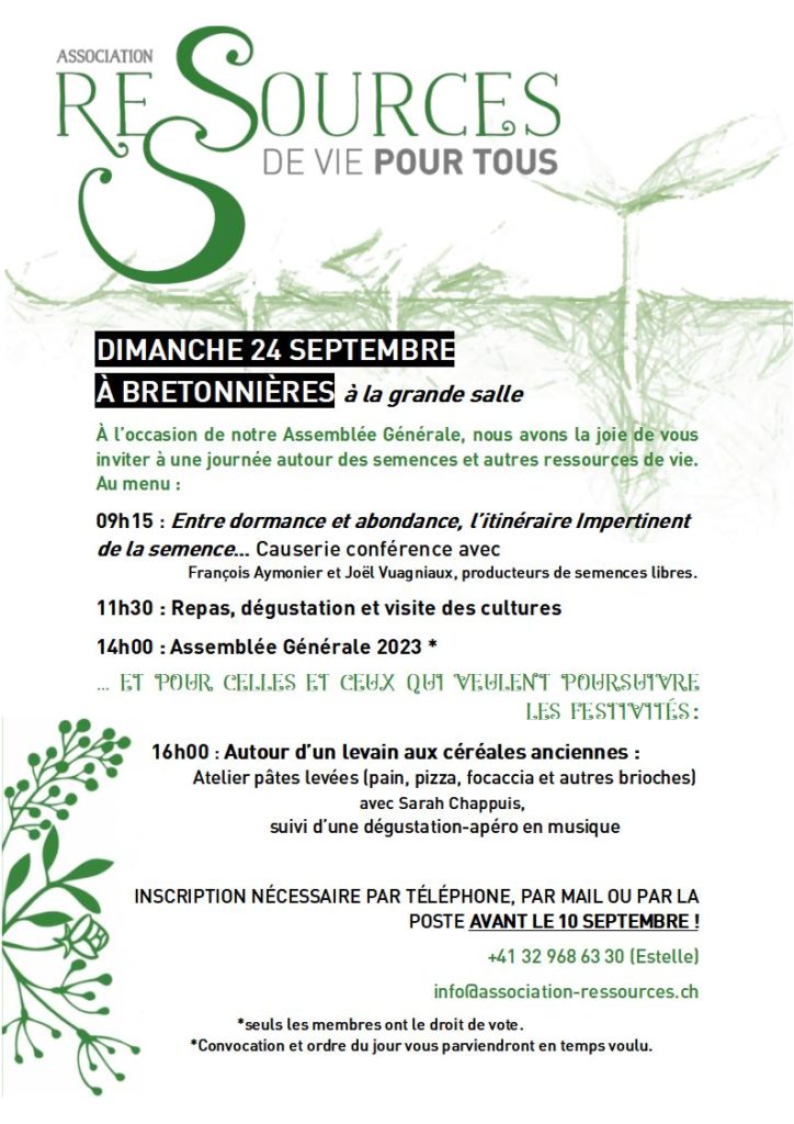 Réservez la journée du 24 septembre pour les événements autour de notre Assemblée Générale à Bretonnières.