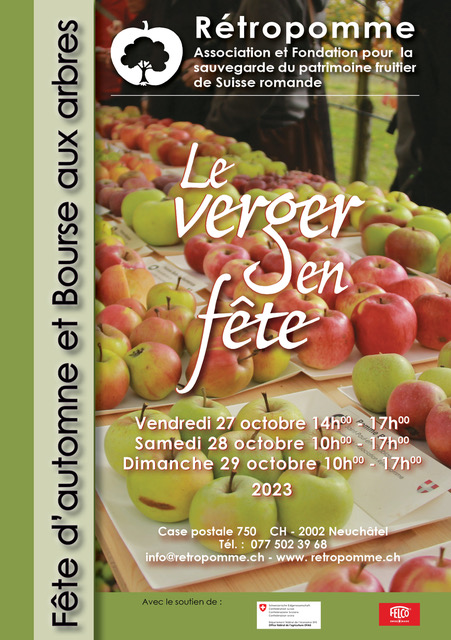 Nous participons au verger en fête de nos voisins neuchâtelois le 27-29 octobre 2023 : Vendredi 14h-17h, Samedi et dimanche 10h-17h