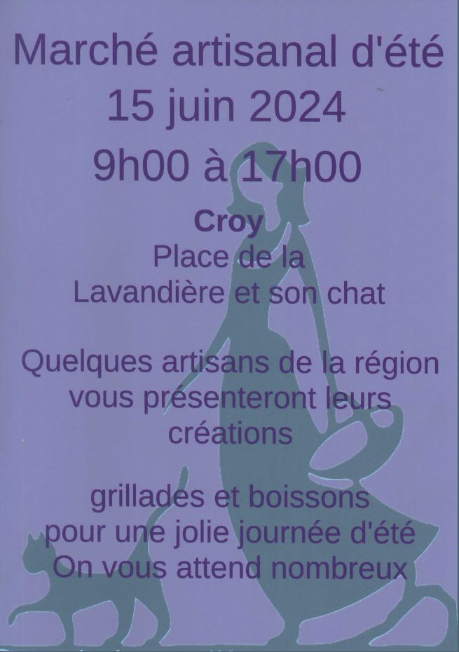 Marché artisanal d’été à Croy – 15 juin 2024 Mar 26, 2024 | Agenda Des artisans de la région de Croy VD présentent leurs créations. Plus d’info : https://croy.ch/agenda/